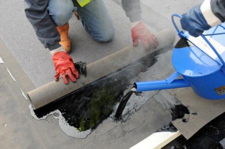 По требованиям, прописанным в технике безопасности, разогрев битума на самой кровле запрещен для того, чтобы не вызвать воспламенение битума и возможного пожара. Это особенно актуально для многоквартирных высотных жилых домов. В случае, когда требуется залить битумом большую площадь, особенно при низких температурах (но не ниже +5°С), применяются системы для разогрева и подачи битума. Такие системы могут быть смонтированы как на автоцистерне, так и в виде отдельных переносных модулей, транспортируемых к месту разогрева битума на автоплатформе. Такие модули могут быть помещены непосредственно на кровлю, если при их работе не используется открытое пламя. Если же нет возможности установки системы разогрева битума на крышу, либо это невозможно по соображениям техники безопасности, подать большое количество разогретого битума на крышу можно при помощи системы насосов и шлангов. Альтернативным вариантом при проведении кровельных работ является наплавление битумных материалов открытым пламенем. Этот способ позволяет наплавлять битум и при температурах ниже 0°С. Но, поскольку при проведении этих работ применяется открытое пламя, требуется обеспечить усиленные меры пожарной безопасности при проведении таких работ. При обработке небольших поверхностей кровли, возможен вариант ручной подачи разогретого битума на крышу с использованием вёдер или специальных леек. Таким образом, подача горячего битума на кровлю является наиболее безопасным, но и наиболее затратным методом работы. Поэтому принимать решение о его использовании необходимо на основании имеющихся технических возможностей, экономической целесообразности и наличия альтернативных способов обработки поверхности кровли.